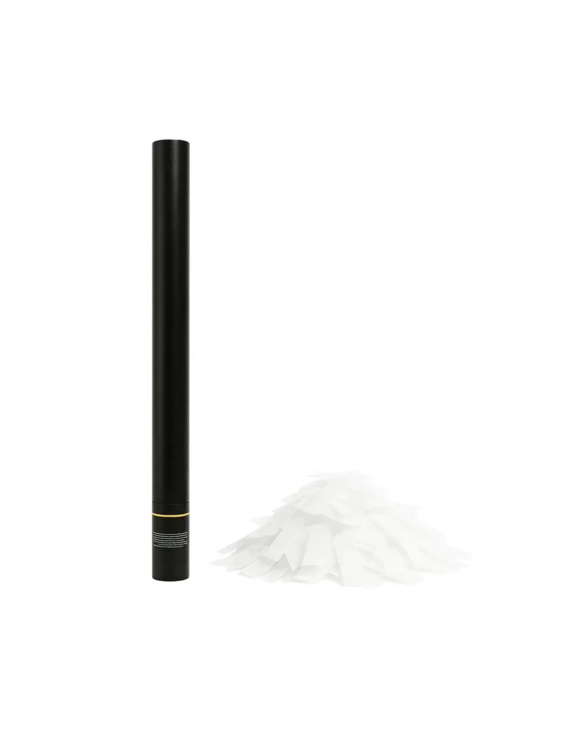 Cañón de confeti BIO manual de 80 cm. La carga de confeti es de papel de arroz, material totalmente biodegradable y de muy rápida descomposición.