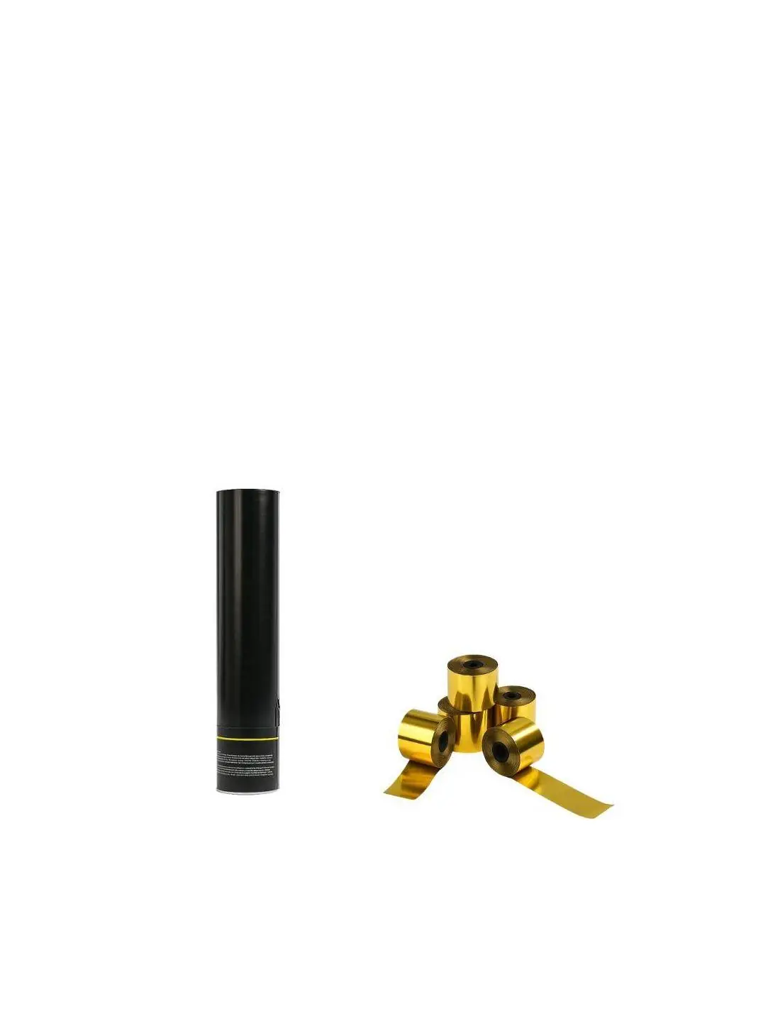Lanzador manual de 30 cm. cargado con serpentinas de 0,85 cm x 5 metros de largo. Las serpentinas en acabado brillo tienen un acabado brillo estéticamente precioso ya que el acabado es metalizado. En cambio, las serpentinas papel tienen una caída más lenta.