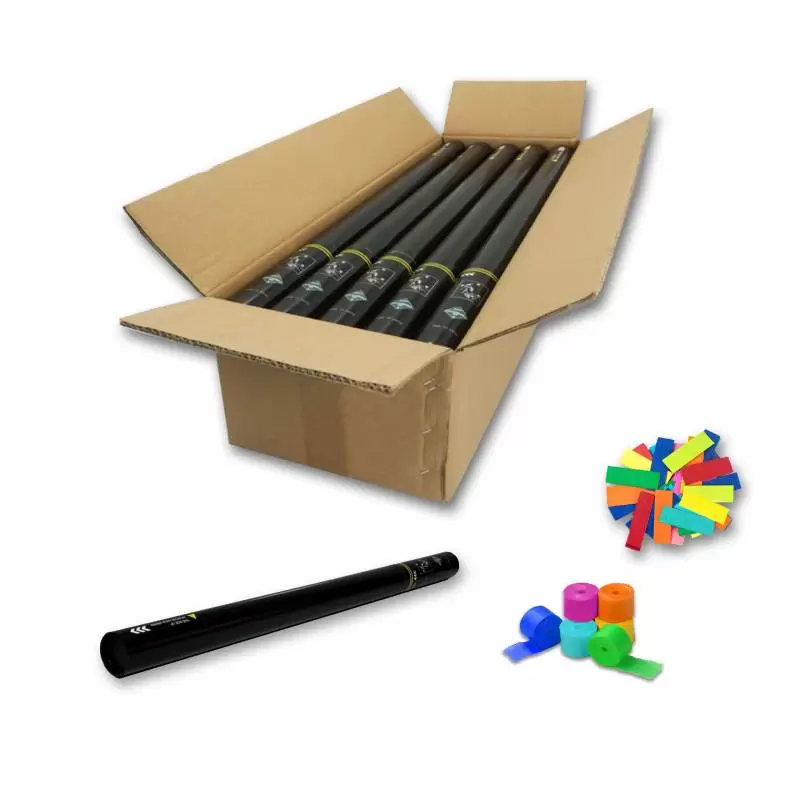 Pack de 20 cañones manuales de 80 cm. confeti + serpentinas.