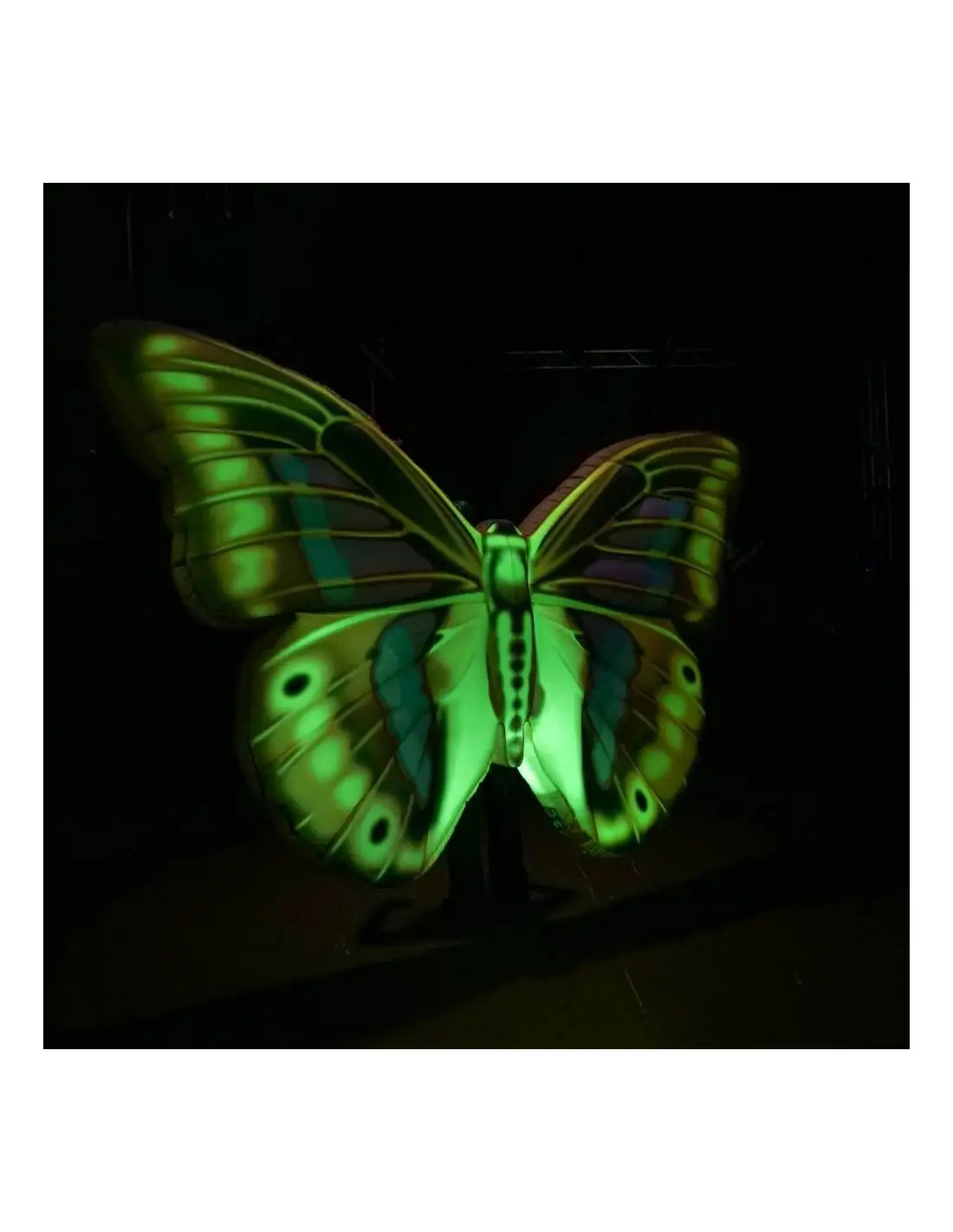 Mariposas luminosas de diferentes colores para animar todo tipo de desfiles. Disponibles en tres colores de tela diferentes pero ilumínalas con cualquier otro color gracias a su luz LED interior, ya sea blanco, verde, rojo, azul, amarillo, naranja, morado... en diferentes tonos e intensidades.