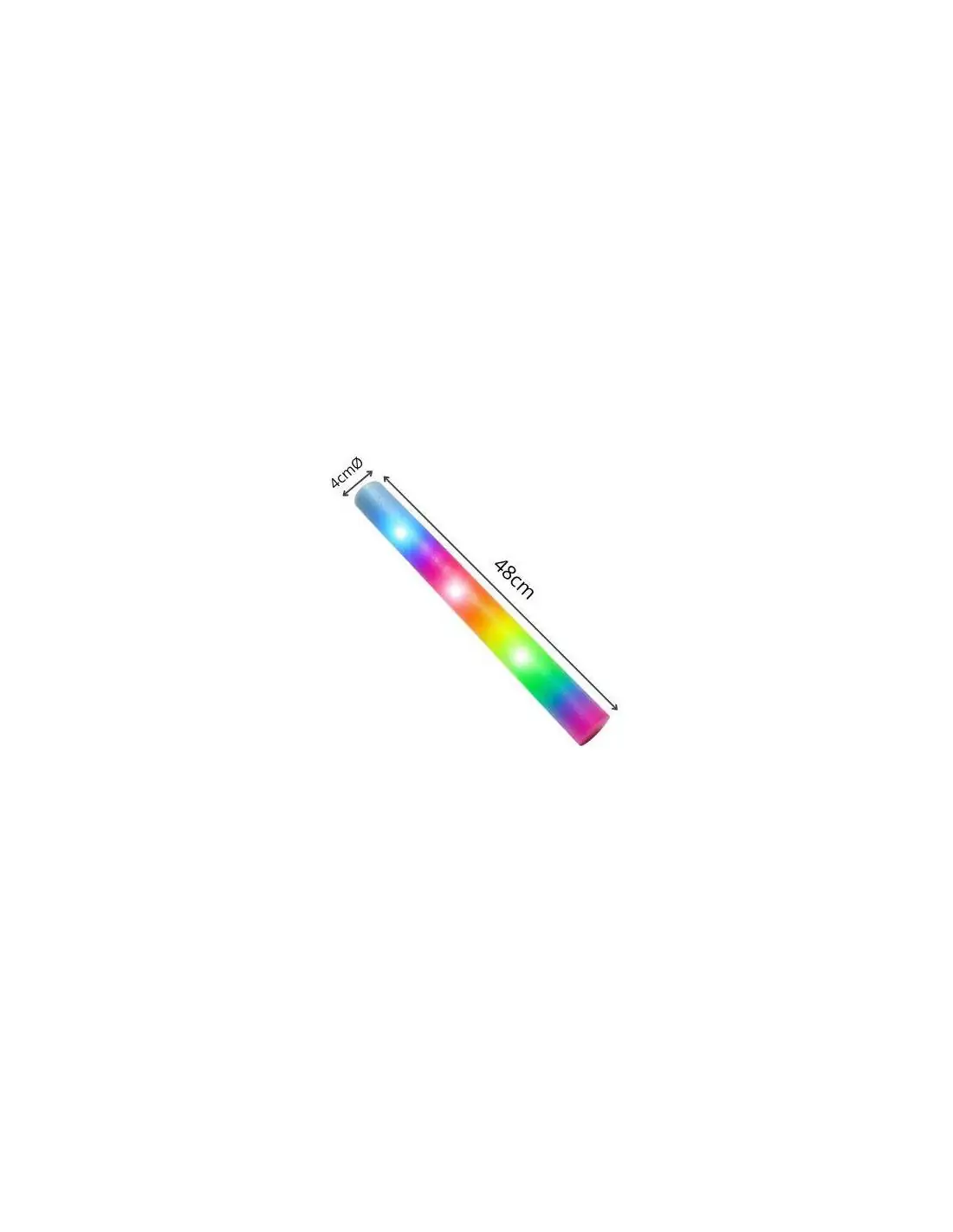 Incluye una unidad del mencionado palo de espuma LED, de 48 centímetros de longitud, cuya luz interior está disponible en los colores rojo, azul, verde, blanco o multicolor.