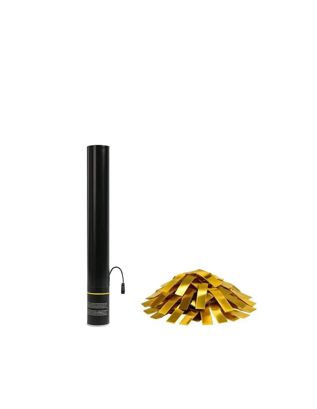 Canon à confettis électrique de 50 cm. Les confettis inclus sont métallisés, d'une taille de 2 cm de large et de 5 cm de long et pouvez choisir parmi une large gamme de couleurs. Une machine électrique est requis pour le fonctionnement du lanceur.