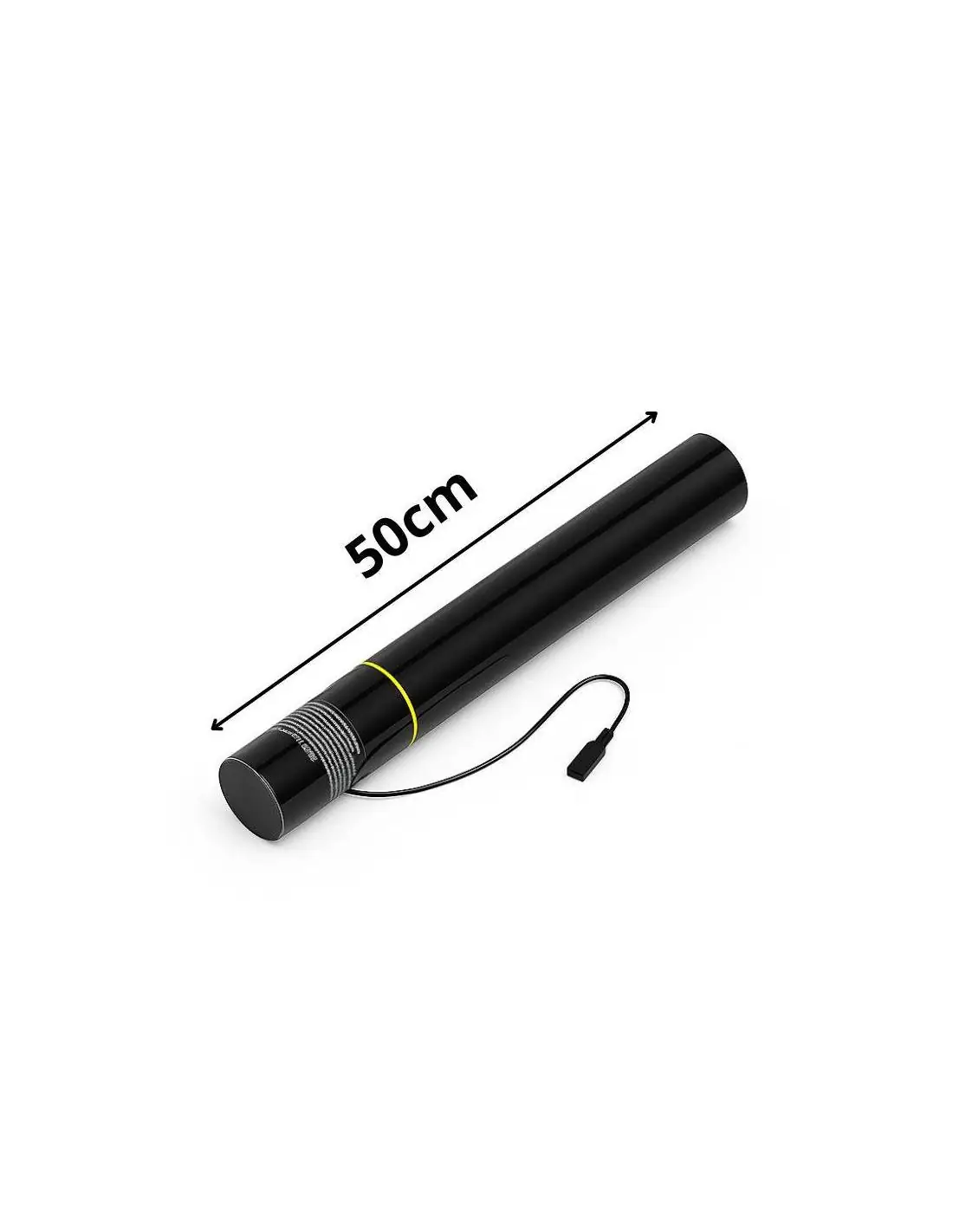 Canon à confettis électrique de 50 cm. préchargé pour le lancement de ce dernier, pour lequel un déclencheur fournissant la tension est nécessaire. De plus, vous avez le choix entre deux matériaux : papier ou métallisé. Les premiers chutent plus lentement du fait de leur légèreté, tandis que les seconds ont un effet métallisé bien plus beau.