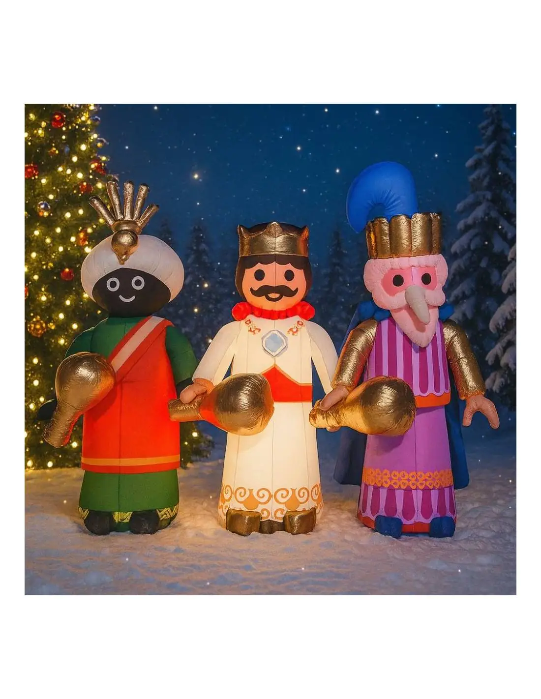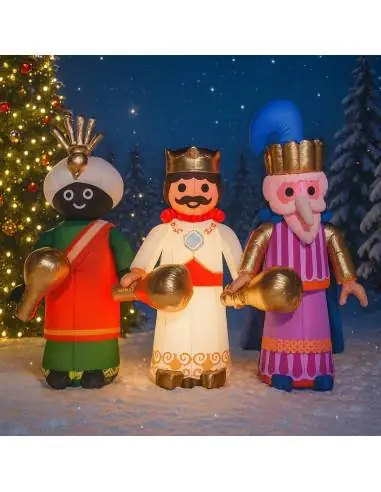 Pack de trois Rois Mages gonflables à LED de 3 mètres de haut : Melchior, Gaspar et Balthazar. Parfait pour décorer différents espaces ou comme pièce maîtresse d'un char. Faites venir les trois Rois Mages d'Orient!