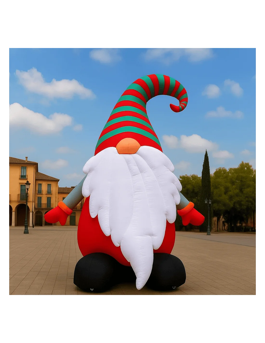 Nain gonflable LED de 3 mètres. Un élément décoratif unique qui apportera une touche de fantaisie, de magie et d'originalité à tout événement. Grâce à son éclairage intérieur, il brille de jour comme de nuit, ce qui en fait la pièce maîtresse idéale pour les soirées à thème, les événements d'entreprise, les chars ou les décorations de Noël.