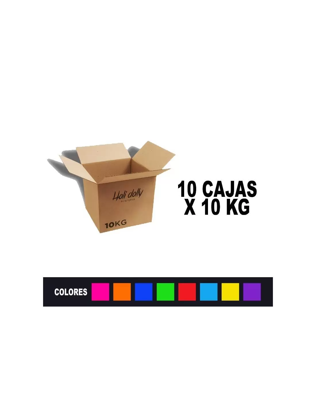 Paquet de 10 boîtes de poudre holi de 10 kg.