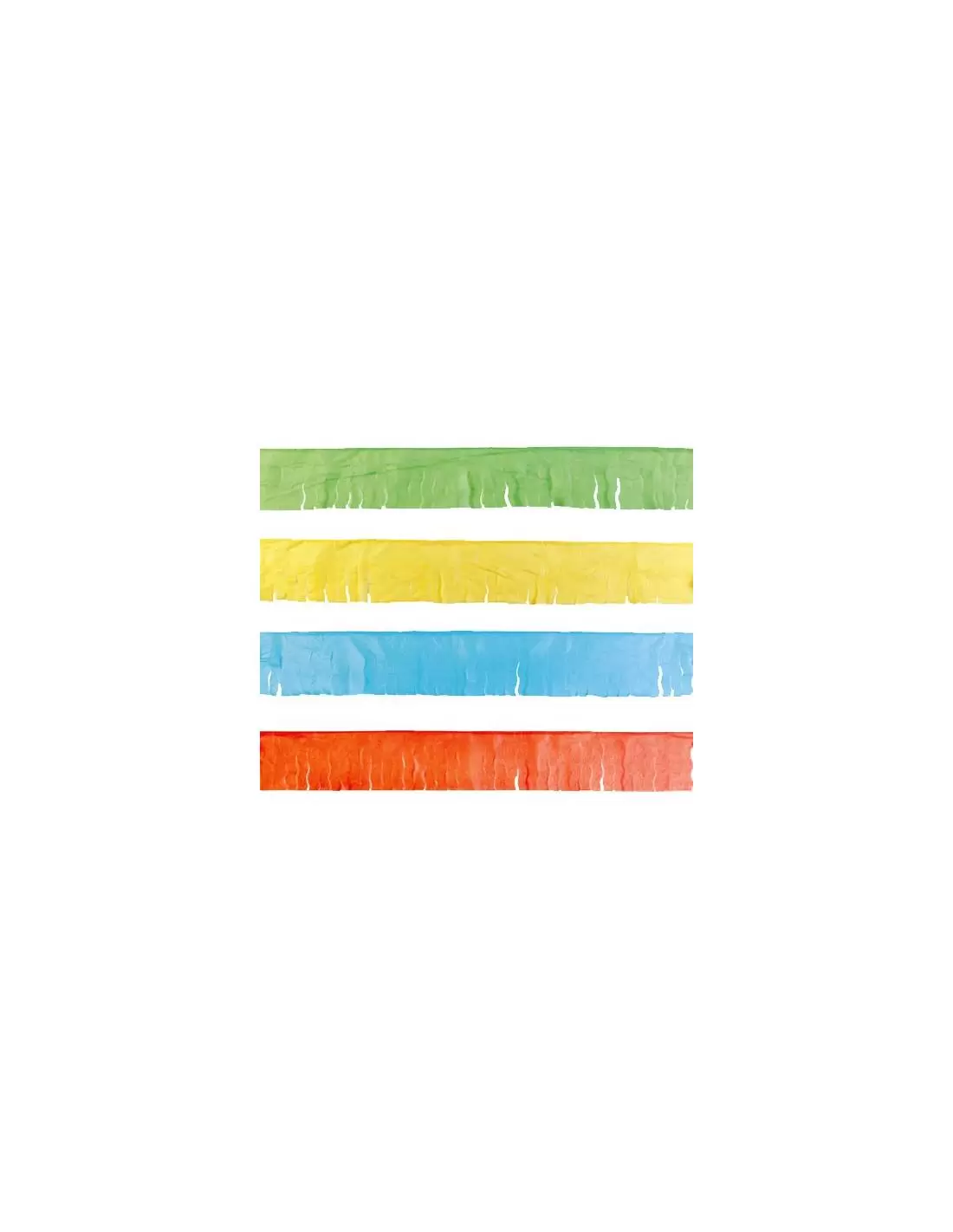 Tissue paper fringe 50 meters long and 17 centimeters high and available in different colors.
