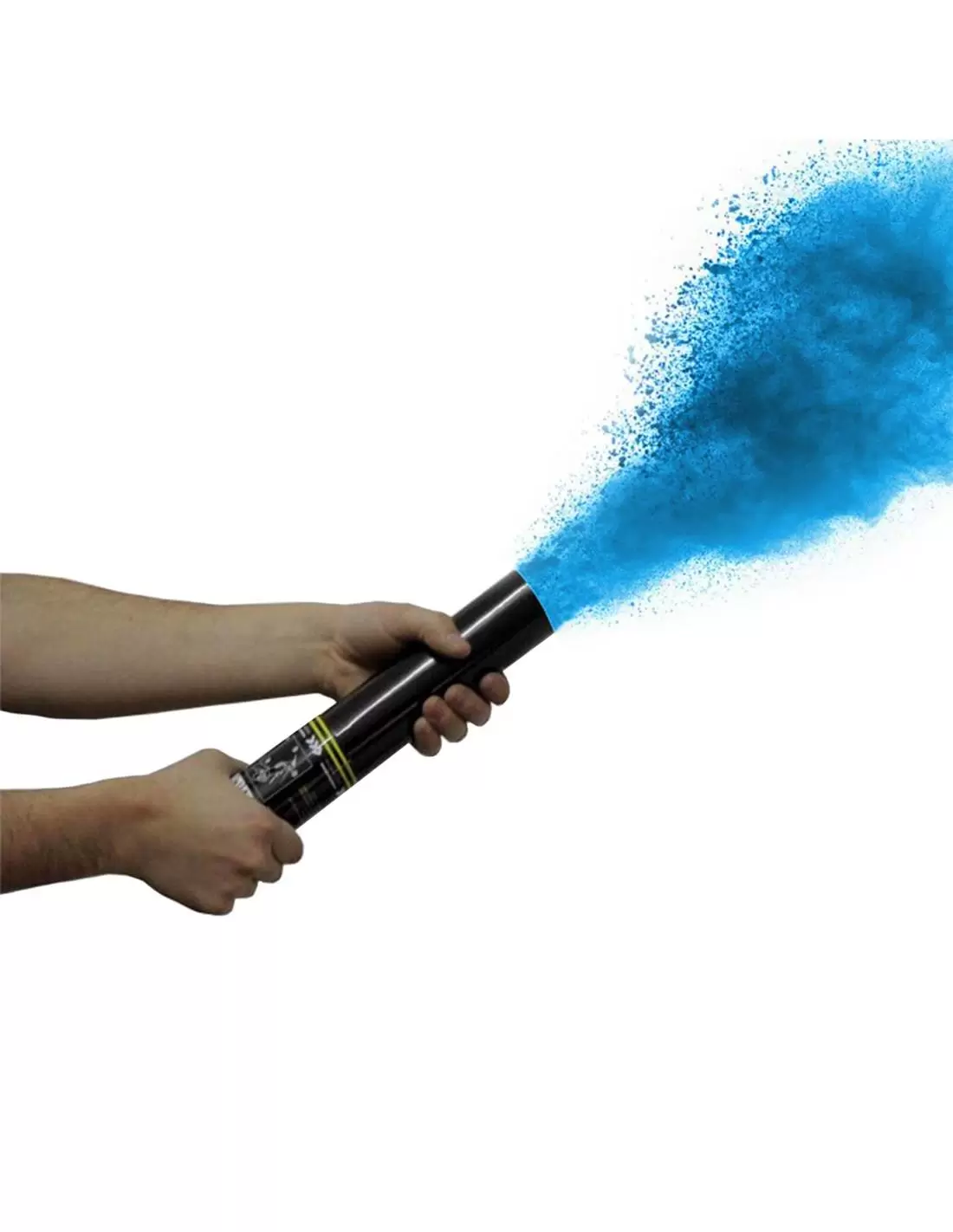 Cannone portatile per polvere holi da 30 cm. Lancia polvere holi che, cadendo, ricopre tutto di colore. Usalo per la festa di rivelazione del sesso o per un baby shower.