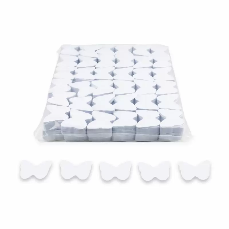 La caduta dei farfalle di coriandoli è molto lenta, poiché il materiale della carta velina pesa molto poco. Come importanti caratteristiche di sicurezza, è un materiale professionale poiché ignifugo al 100%. Questo è qualcosa da tenere a mente per motivi di sicurezza.