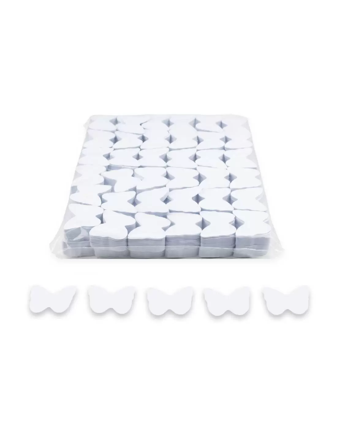 Coriandoli di farfalle di carta velina perfettamente ordinata e confezionati in un sacchetto da 1 kg. Classificazione ignifuga e materiale di qualità professionale.