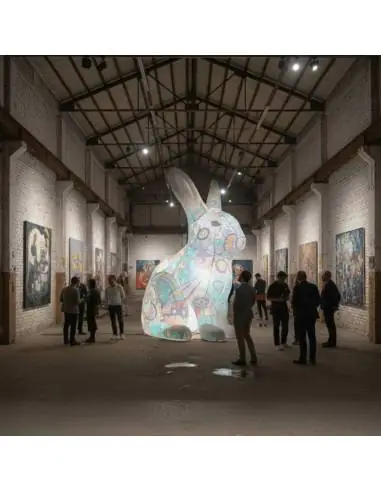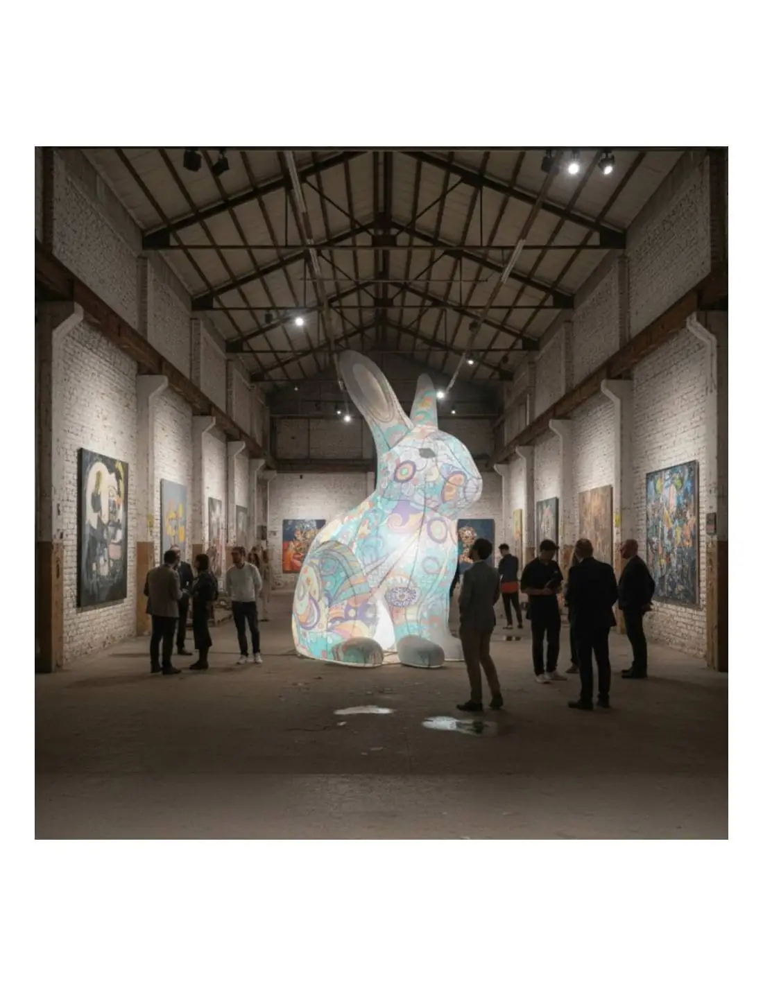 Questo gigantesco coniglietto gonfiabile a LED con stampa mandala è perfetto per decorare spazi, carri allegorici, giardini o eventi a tema come la Pasqua. Grazie all'illuminazione interna a LED, risalta sia di giorno che di notte, aggiungendo un tocco originale e divertente a qualsiasi celebrazione.