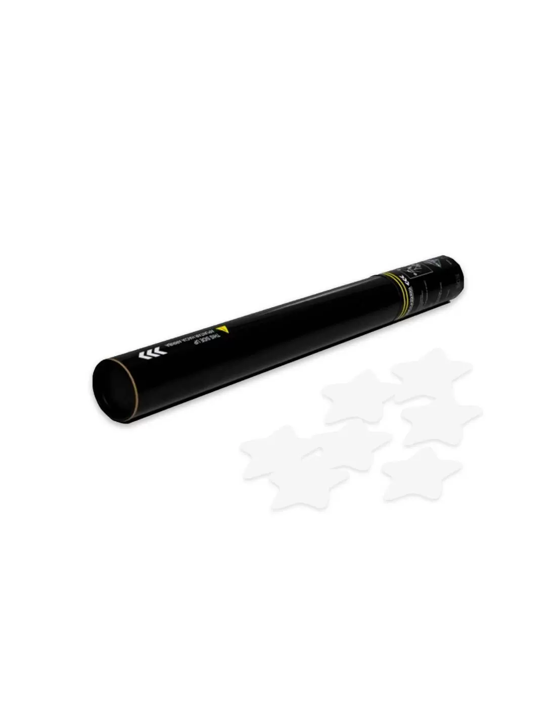 Cannone manuale da 50 cm. caricato con coriandoli a forma di stelle. Viene azionato manualmente ruotando la parte inferiore del tubo.