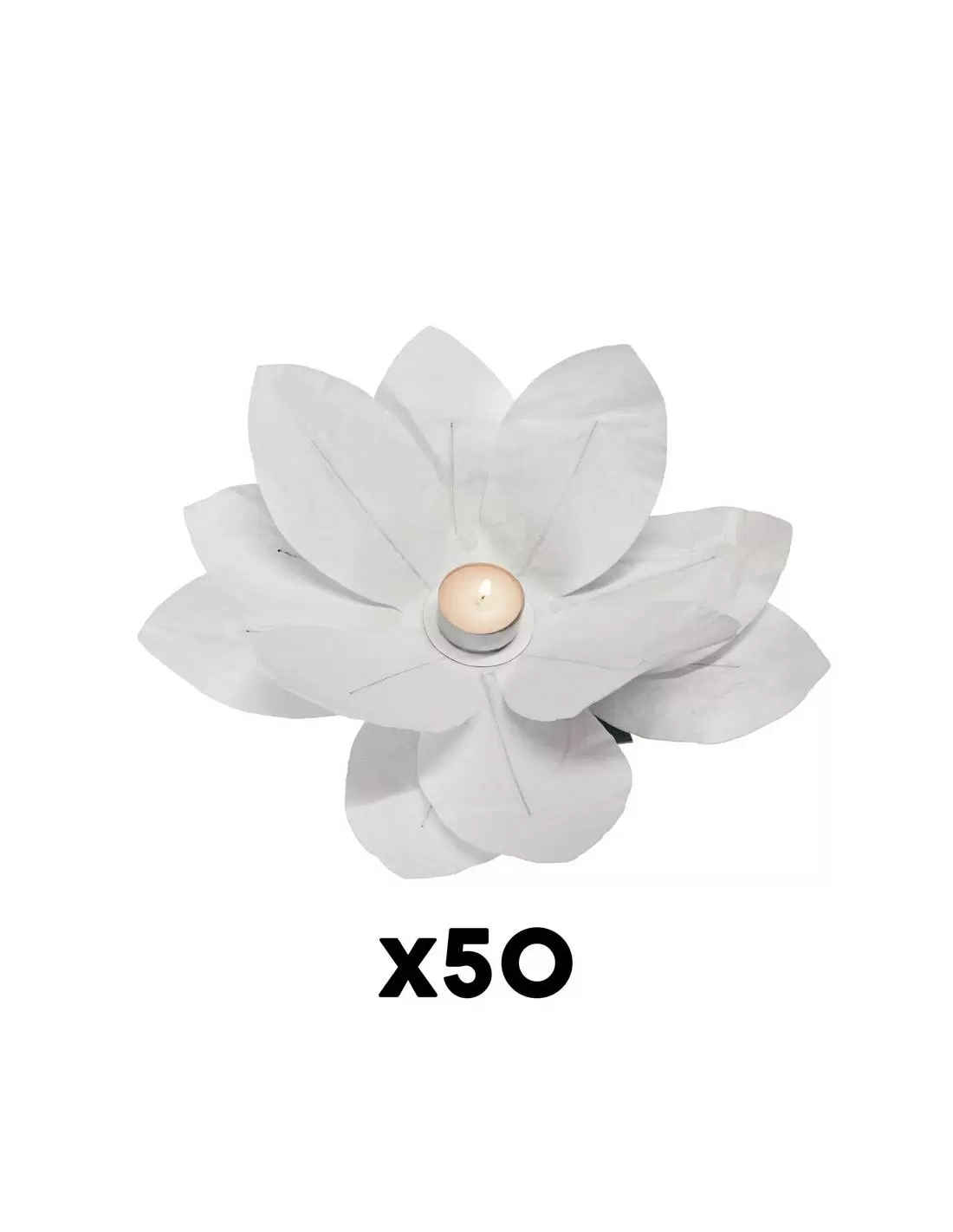 Este pacote inclui um total de 50 unidades de velas flutuantes para piscina de flores de papel, disponíveis em cinco cores (branco, rosa, vermelho, azul ou amarelo) e apresentadas em confortáveis embalagens individuais.